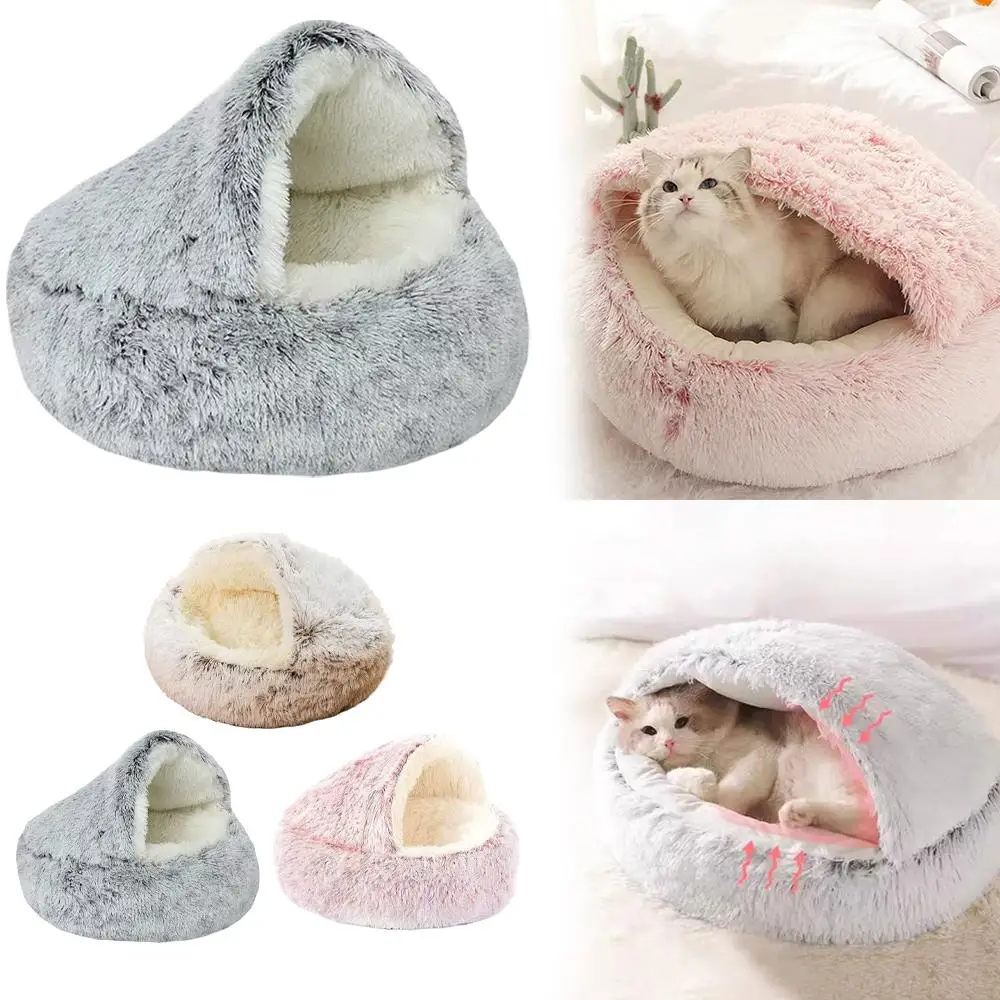 Winter Plush Round Cat Bed Pet Mattress Warm Soft Comfortable Basket Cat Dog 2 in 1 Sleeping Bag Nest for Small Dogs
